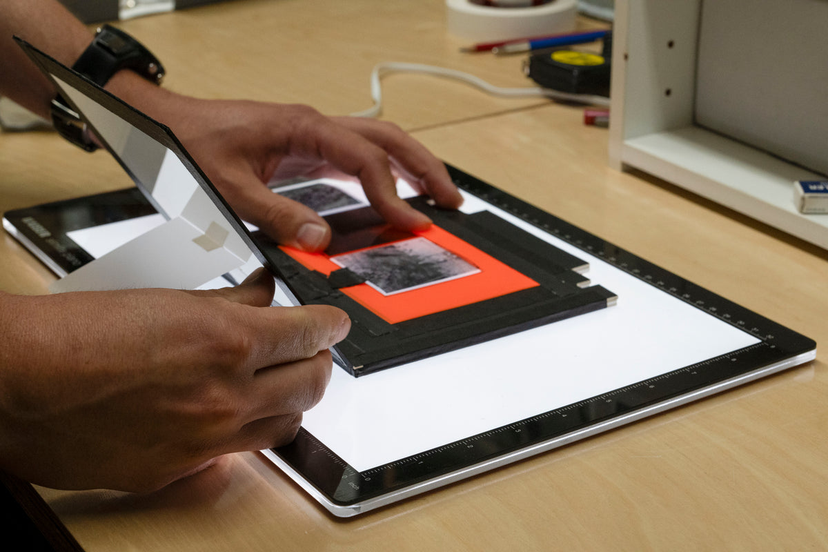 The first step in the making of any print is composing the image in the field. Working in the landscape, I carefully manipulate the camera and evaluate the light to ensure the negative has all the information I need for the creative process to come. As Ansel Adams said "The negative is the score, the print is the performance."